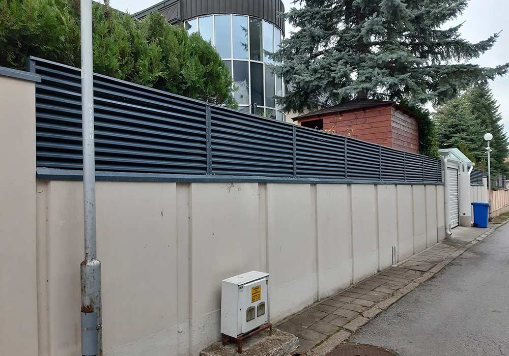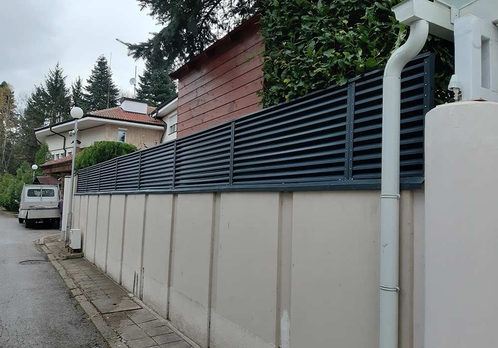 Ограда от горещопоцинковани ламели RAL 7016 дължина 16 м. / височина 1 м.